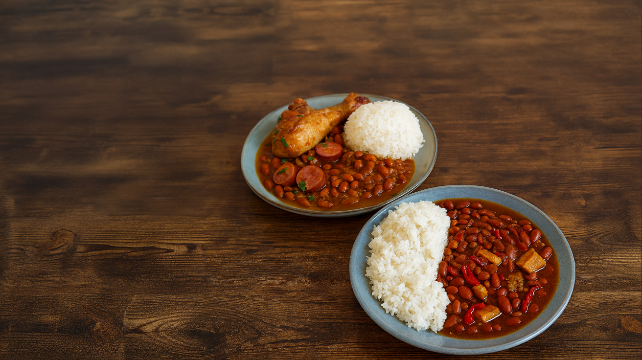 - Loaded brown beans with smoked chicken, sausage and fresh chicken.